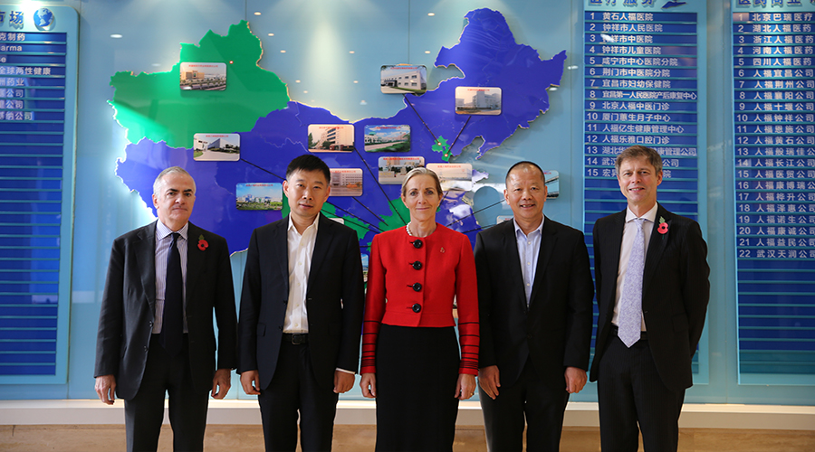 11月9日,英国贸易和出口促进部长罗娜•费尔海德一行访问武汉,莅临好体育官方网站登录集团参观访问,好体育官方网站登录集团董事长王学海、常务副总裁徐华斌、医疗事业总监陈亮予以接待。双方就产业、研发及医疗项目等多领域的合作空间及合作展望进行了深入交流和会谈。