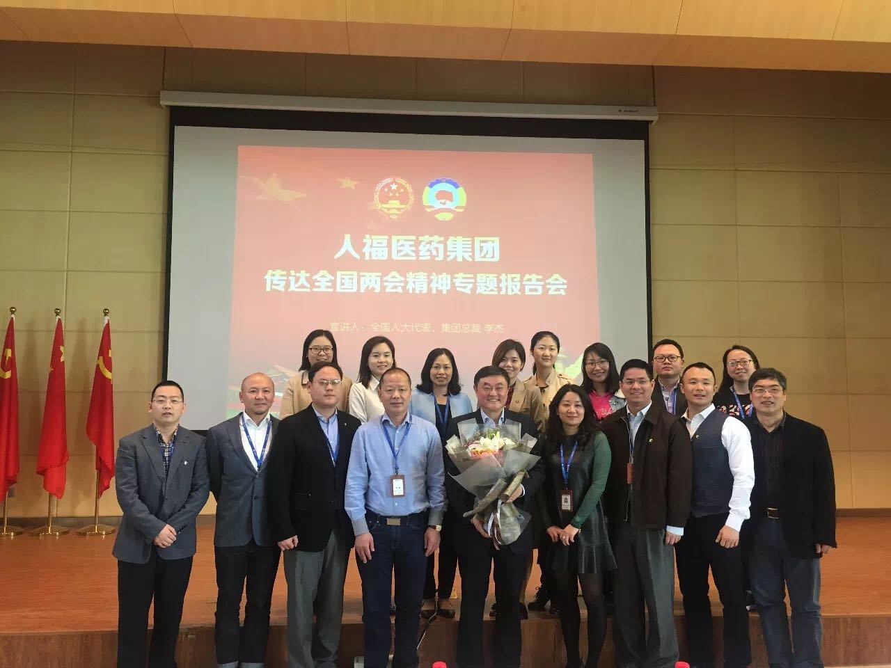 报告会上,李杰总裁分享了他在全国两会履职参会的亲身经历,并就会议概况、会议精神、参会体会向大家进行传达。在十几天会议期间,李杰亲身参与多项国家重大决策的审议和讨论,见证了习近平总书记全票当选国家主席、中央军委主席的重要历史时刻,并就宜昌规划建设、医药行业发展、社会民生等方面内容在代表团和小组会上发言,提出建议十多条。 他认为,在认真学习领会全国两会精神的同时,更重要的是把精神贯彻到企业发展的每项工作中去。李杰总裁要求人福全体员工:以壮士扼腕的决心,一往无前的气概,朝着成为具有持续竞争力的世界级医药企业的目标,快马扬鞭、全力以赴。我们正处在中国大变革、大发展的新时代,不仅要做见证者、受益者,更要作为参与者、推动者,以舍我其谁的勇气和担当,肩负起保护人民生命健康的责任!让我们紧密团结在以习近平总书记为核心的党中央周围,勇担使命,奋往直前,在春风浩荡的新时代,凝聚磅礴力量,书写辉煌篇章! 两会精神 1、关于《宪法修正案》的主要精神 确立科学发展观、习近平新时代中国特色社会主义思想在国家政治和社会生活中的指导地位;把“中国共产党领导是中国特色社会主义最本质的特征”写入宪法第一章《总纲》;修改国家主席任职方面的有关规定;增加有关监察委员会的各项规定。 《宪法修正案》的通过和公布施行,为坚持和维护以习近平同志为核心的党中央权威和集中统一领导,为新时代坚持和发展中国特色社会主义、实现“两个一百年”奋斗目标和中华民族伟大复兴的中国梦,提供了有力宪法保障。 2、关于《监察法》的主要精神 监察法是一部对国家监察工作起统领作用的基础性法律。监察法的审议通过,表明国家监察体制改革取得决定性成果,为构建集中统一、权威高效的国家监察体系奠定了坚实基础。《监察法》出台实现了对国家行使公权力人员监察全覆盖。 宣讲足迹 3月27日下午,宜昌人福药业公司举办传达全国两会精神专题报告会,全国人大代表李杰向公司中高管、员工代表共计400余人作专题报告。湖北日报、湖北卫视、三峡广电、三峡日报等新闻媒体参会并对活动进行全面报道。 3月28日,李杰受邀分别在宜昌高新区、宜昌市卫计委向党员干部传达两会精神,高新区管委会主任汪元程、宜昌市卫计委主任张琼分别主持了报告会。 3月30日,好体育官方网站登录集团总部,隆重召开“好体育官方网站登录集团传达全国两会精神专题报告会”。全国人大代表、好体育官方网站登录集团总裁李杰为公司全员宣讲两会精神。 接下来,李杰还将在武汉工程大学、宜昌市一医院等单位,向大家深入传达全国两会精神。 两会履职风采 中共十九届中央政治局常委,十三届全国人大常委会委员长栗战书与全国人大代表李杰亲切握手 全国人大代表李杰、于清明探讨医药企业如何提升核心竞争力 全国人大代表李杰接受媒体采访