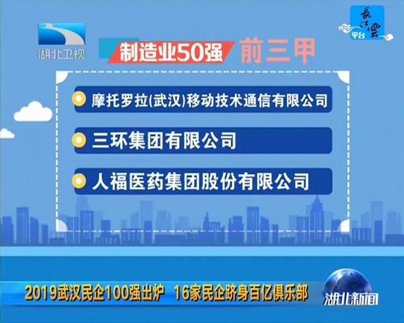 7月29日,2019武汉民营企业100强、武汉民营制造业企业50强排行榜正式发布。好体育官方网站登录集团再次入围,荣膺武汉民营企业100强第14位、武汉民营制造业企业50强第3名。