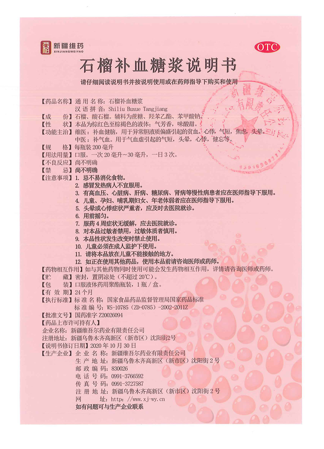 石榴补血糖浆